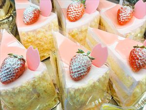 春の訪れを感じる今日この頃。プチローズでは、店内の色も春らしくなりました。春色のラッピング商品に、桃色のデコレーションケーキ、ピンク色のクリームのケーキまで、店内は華やいでいます。